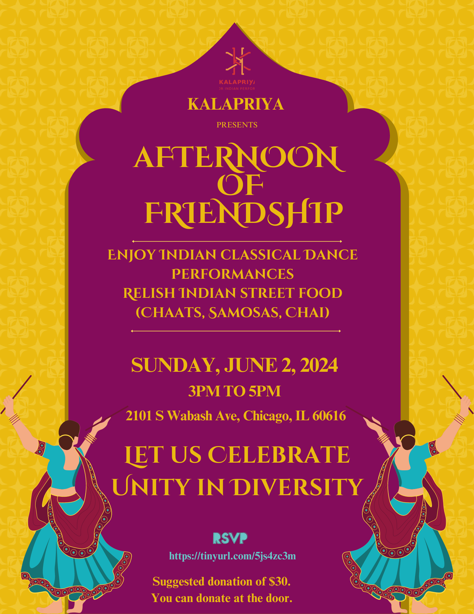 Please join the Kalapriya board and staff on Sunday, June 2 from 3:00-5:00PM for an afternoon of friendship at our downtown Chicago studio. Enjoy Indian classical dance performances, relish Indian […]