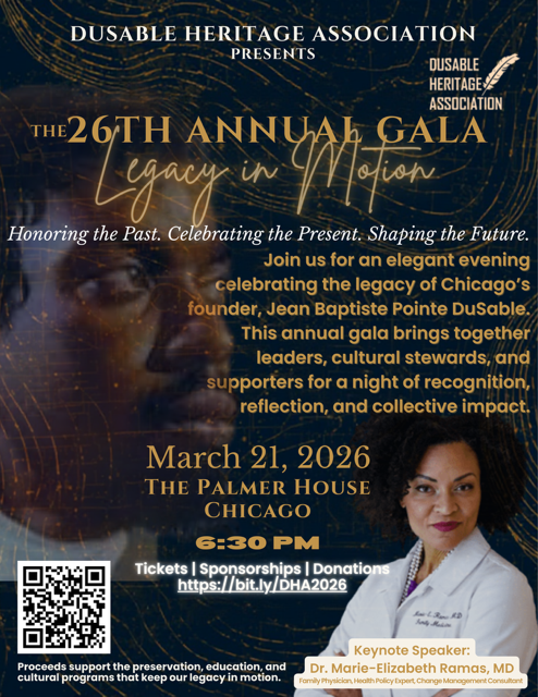 Join the DHA on March 21st, 2026 for the DuSable Heritage Association's 26th Anniversary Celebration Gala at the historic Palmer House Hotel in Chicago! Celebrate a quarter century of informing, educating, and illuminating the […]