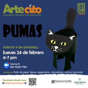 ![]() A family-friendly, Spanish-language workshop presented in partnership with Lincoln Park Zoo. Learn about pumas while making your own from art supplies! ¿Sabías que los Pumas pueden correr a una velocidad de hasta 35 millas por hora? ¡Esa es mas o menos la velocidad que conducimos los automóviles en la ciudad! ¡Únase a nosotros mientras exploramos […]