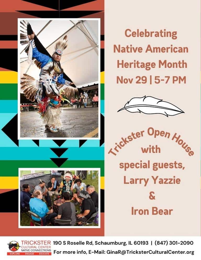Join us in "Celebrating Native American Heritage Month" with a Trickster Open House on November 29 from 5-7 PM and special guests, Larry Yazzie and Iron Bear.