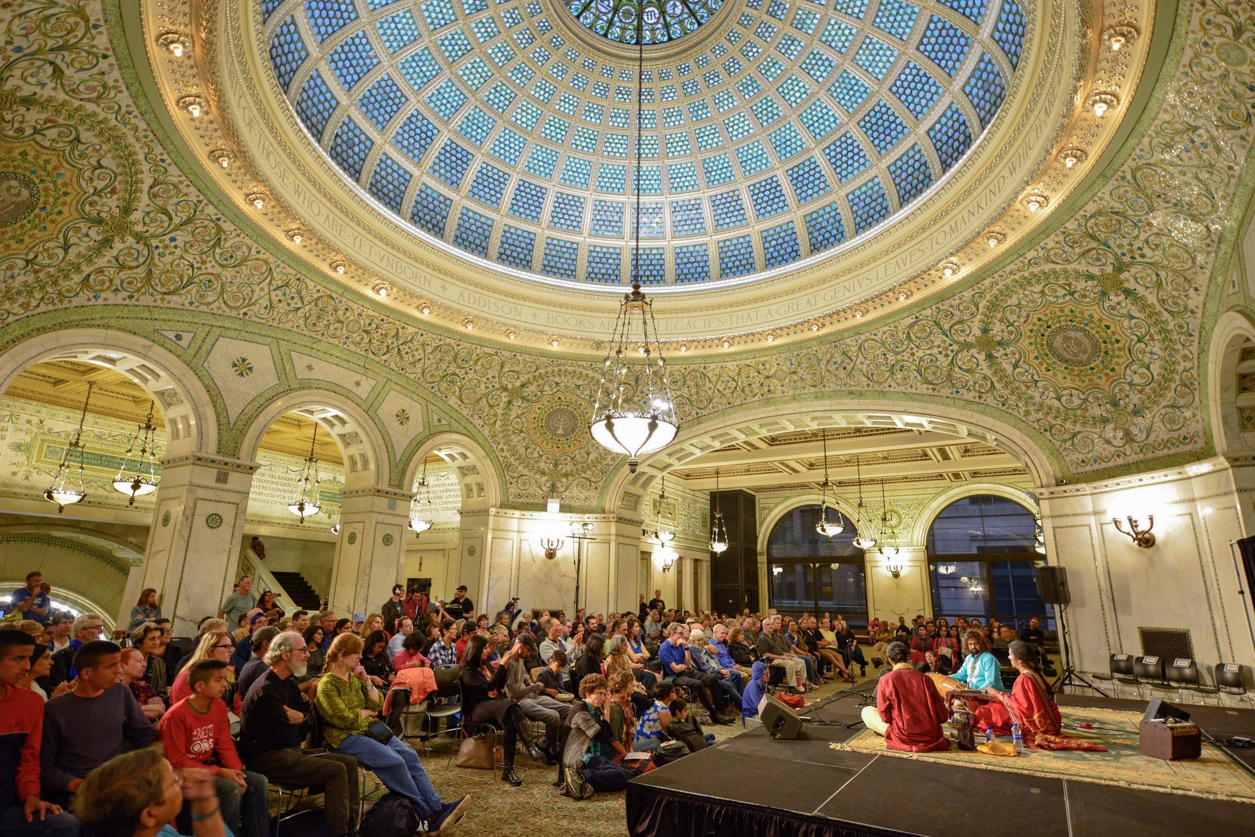Organizers: Swedish American Museum South Asia Institute's 11th annual, all-night concert featuring 8 performing ensembles and featured artists under the world’s largest Tiffany Dome at Preston Bradley Hall.