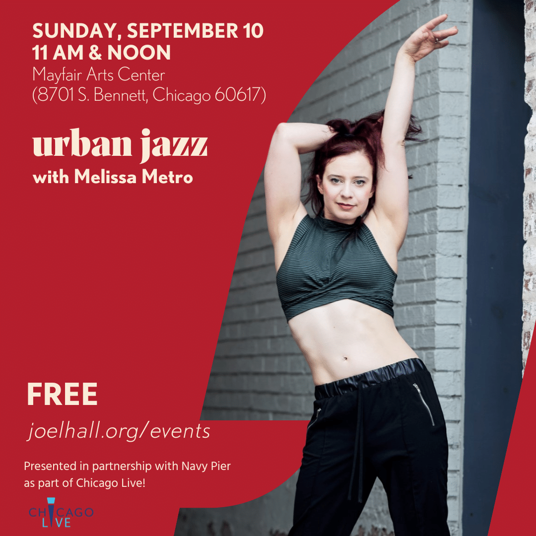 Joel Hall Dancer Melissa Metro will lead introductory classes in Urban Jazz, uniquely Chicago Jazz Dance technique.