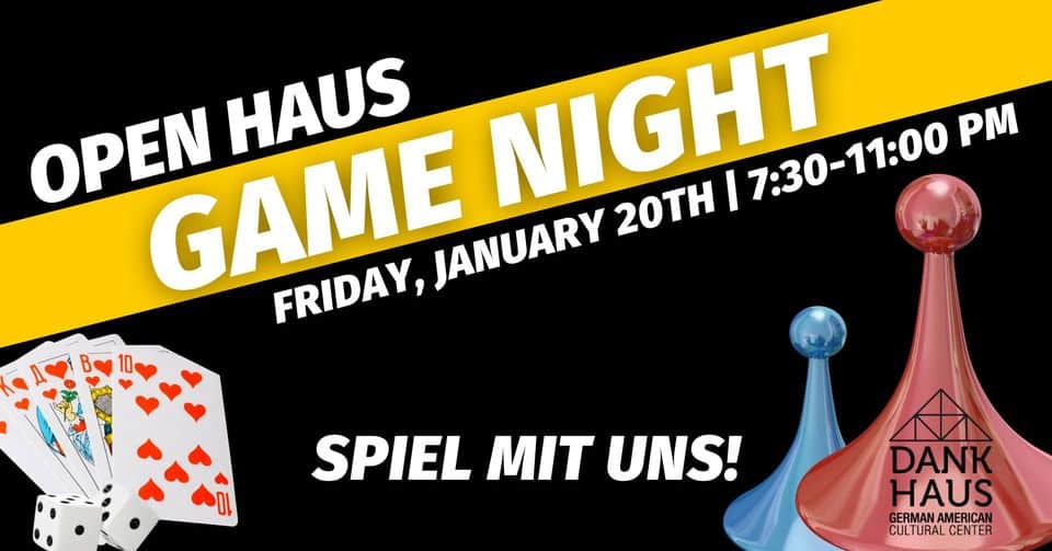 Free Our January Open Haus will be the best game night in town! Did you know that Germans invented the jigsaw puzzle and board games? Bring your friends and your competitive spirit and celebrate Germany with a night of German food, drink, games, and Gemütlichkeit! We'll have games of all types - board games, card games, […]