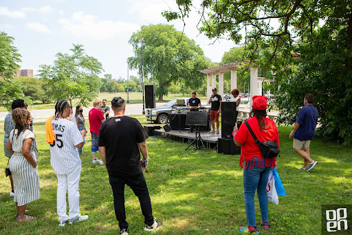 Bringing the community together for the Lawndale Peace Party in 2021. This summer the community is hosting a series of expanded events. Photo courtesy of OPEN Center for the Arts