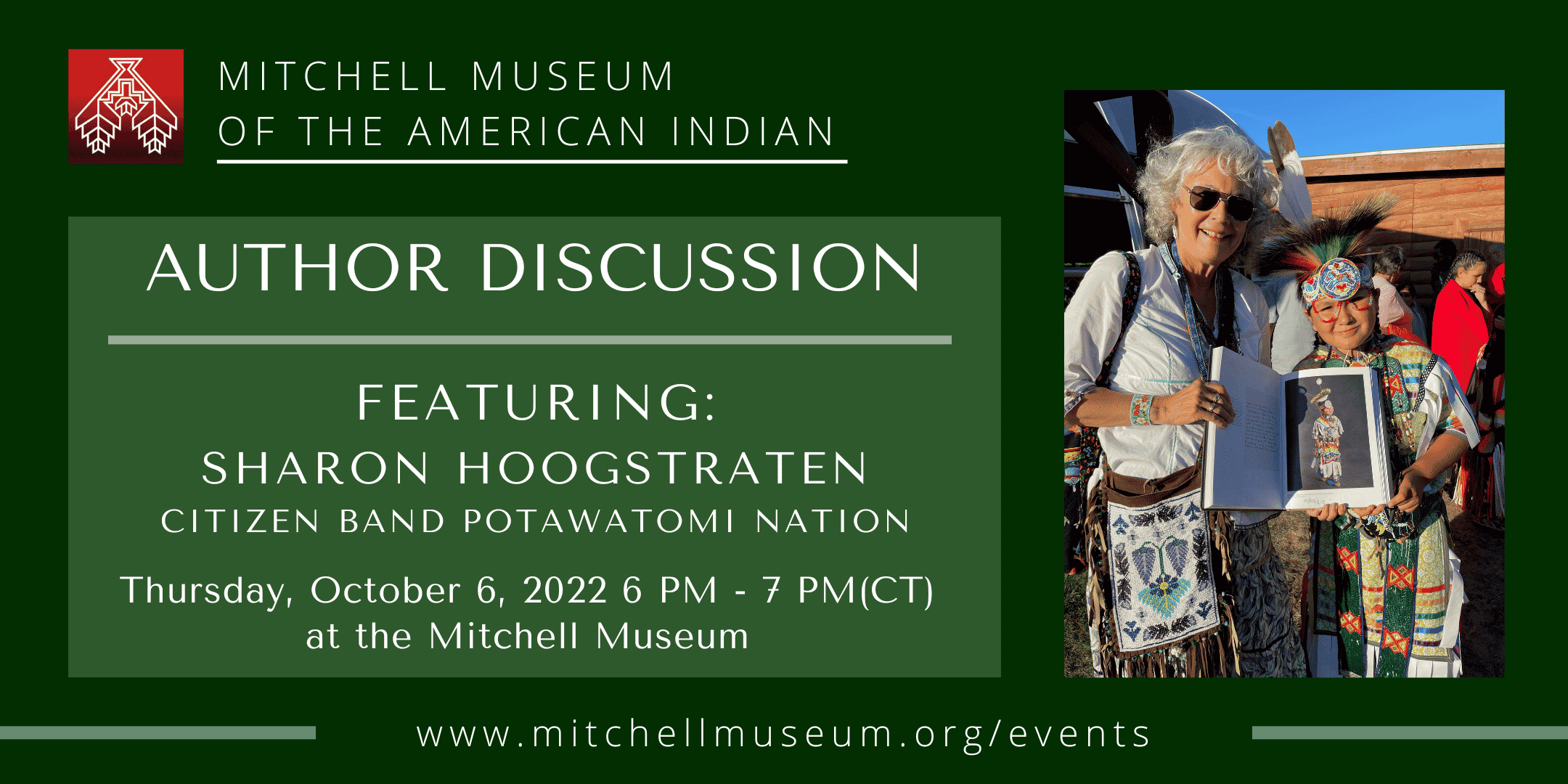 Join us on Thursday, October 6th, 2022, at 6:00 p.m. as we welcome photographer and author Sharon Hoogstraten to the Mitchell Museum of the American Indian. We invite you to this in-person conversation and Q&A to celebrate Hoogstraten’s work and the release of her new book, Dancing for Our Tribe: Potawatomi Tradition in the New Millennium.