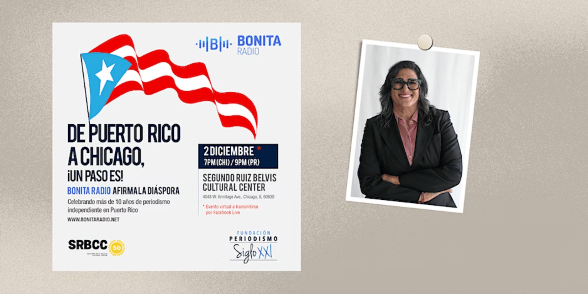 ¡Bonita Radio llega al Segundo Ruiz Belvis Cultural Center! “De Puerto Rico a Chicago, un paso es!”, una jornada de afirmación con la diáspora en Chicago, la Fundación Periodismo Siglo XXI, Bonita Radio y la reconocida periodista Carmen Enid Acevedo.