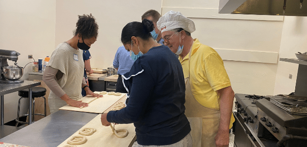 We are hosting 2 pretzel making classes this fall. Why? We LOVE pretzels! These pretzel-making classes will be offered in-person. We will host up to 20 students in our industrial kitchen at the DANK Haus. These 20 students will get hands on training from Reinhard Richter, our resident Pretzel Meister, and take home their homemade pretzels at the end of the class.We have 2 classes to choose from. All students will get the recipe and be able to communicate directly with our chef.