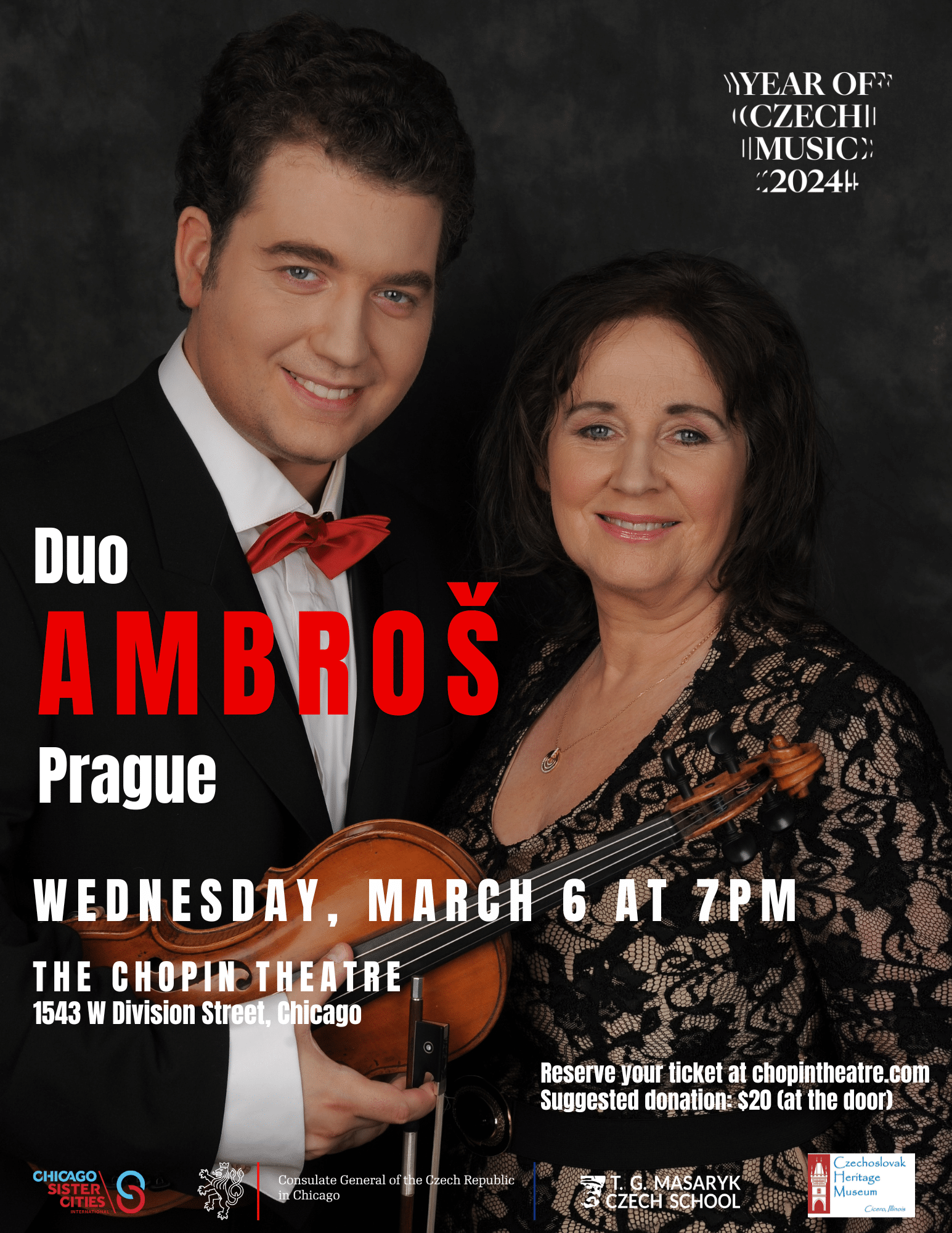 In honor of the 200th birth anniversary of Bedřich Smetana, hailed as the “father of Czech music,” the Czech Republic proudly declared 2024 as the Year of Czech Music. To kick off this extraordinary celebration, we invite you to an enchanting concert on March 6 at the Chopin Theatre, featuring Duo Ambroš from Prague.