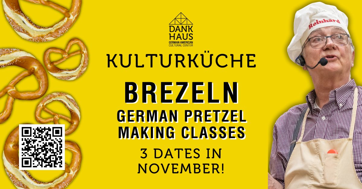 We are hosting 3 pretzel making classes this fall. Why? We LOVE pretzels! These pretzel-making classes will be offered in-person. We will host up to 25 students in our industrial kitchen at the DANK Haus. These 25 students will get hands on training from Reinhard Richter, our resident Pretzel Meister, and take home their homemade pretzels at the end of the class.