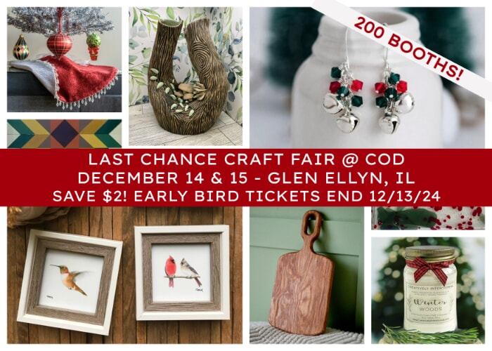 There’s still time to shop handmade for the holidays! Artisans from across the Midwest are coming to Glen Ellyn with over 200 booths of thoughtful gifts, festive decor, jewelry, clothing, bath and body, kids’ items, and much more. Save $2 and skip the line when you buy your tickets online by December 13th!