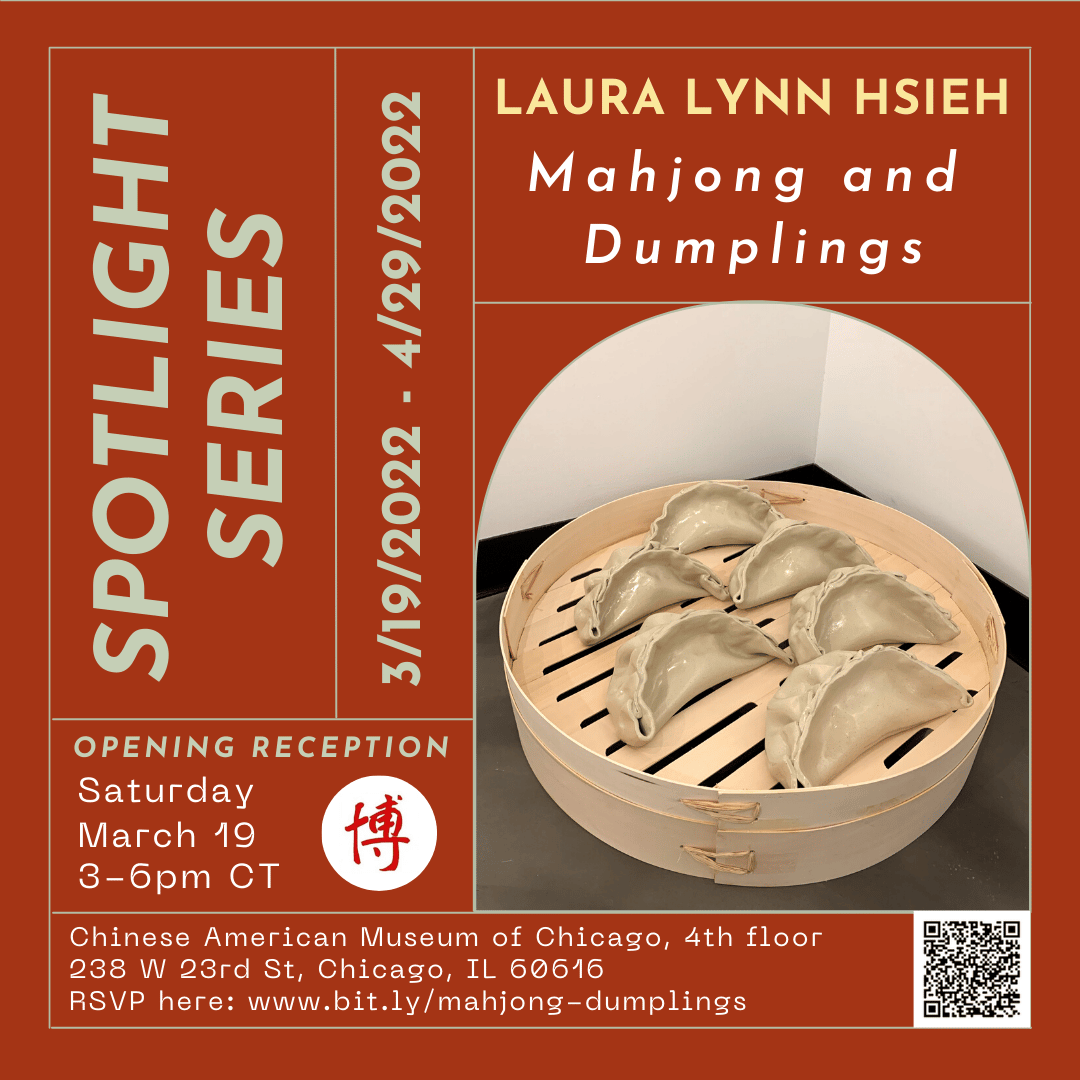 Join us on Saturday, March 19th from 3-6pm CT for the inaugural opening reception of Laura Lynn Hsieh: Mahjong and Dumplings featuring ceramics and video by the artist Laura Lynn Hsieh. This exhibitition will run from March 19 through April 29.