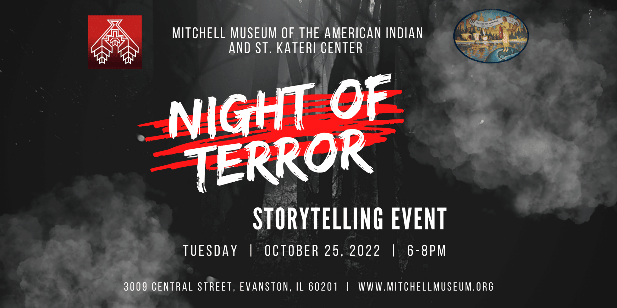 Terror awaits you at the Mitchell Museum’s first ever scary stories told by witnesses of horror within Chicagoland’s Native storyteller community!