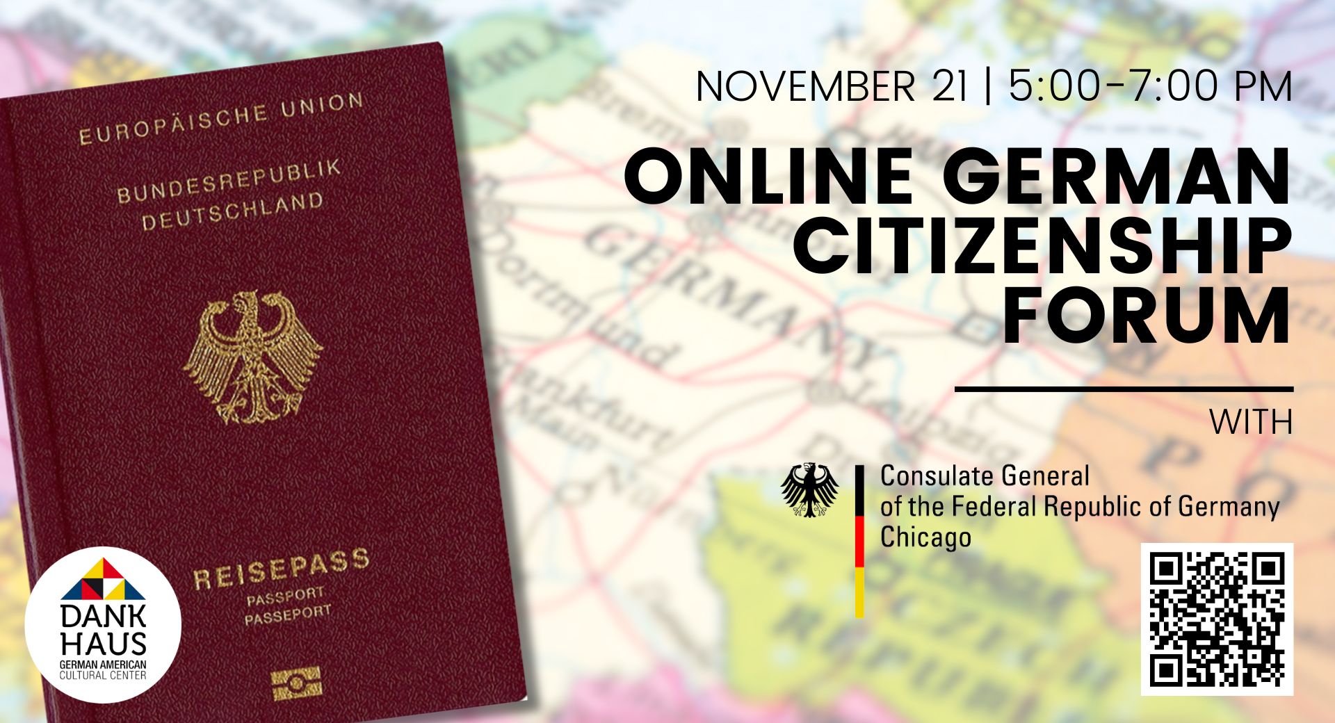 This forum will provide you with insights on hot topics of German citizenship, from obtaining to retaining it.  Representatives of the Chicago German Consulate will give you an understanding of the different application procedures, modalities of dual citizenship, relating family matters and share the news on the latest developments in citizenship law. This event will primarily follow a Question & Answer format.