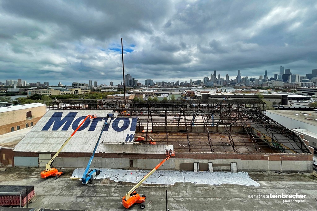 Originally constructed in 1929, the Morton Salt Company Warehouse Complex is a familiar and beloved Chicago Landmark along Elston Avenue near Goose Island. For decades, its enormous hand-painted sign has captivated people traveling along Interstate I-90. As times changed, the property was no longer used for salt storage and processing. Sandra Steinbrecher’s new photography book, The Salt Shed, chronicles the building’s remarkable transformation into a stunning music venue.