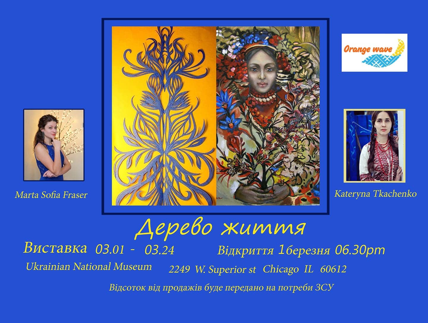 Join us for the opening of our Tree of Life art exhibit featuring Marta Sofia Fraser and Kateryna Tkachenko.  The exhibit opens Friday, March 1, 2024 at 6:30, admission is $10 per person.  The exhibit runs through March 24, 2024.