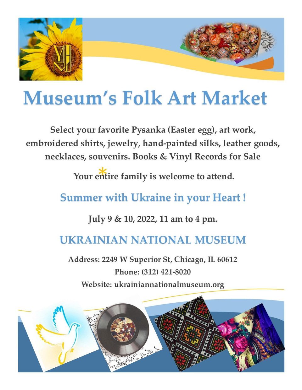 Visit the National Ukrainian Museum’s Folk Art Market! Browse art works, clothing, jewelry, books, and more!