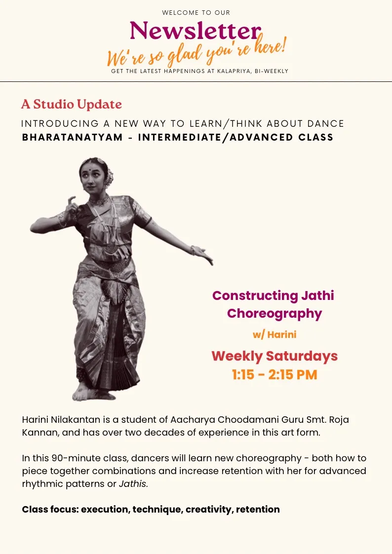 Kalapriya Studio 2101 S. Wabash Ave., Chicago, United StatesWeekly Saturdays 1:15 - 2:15 PM Harini Nilakantan is a student of Aacharya Choodamani Guru Smt. Roja Kannan, and has over two decades of experience in this art form. In […]