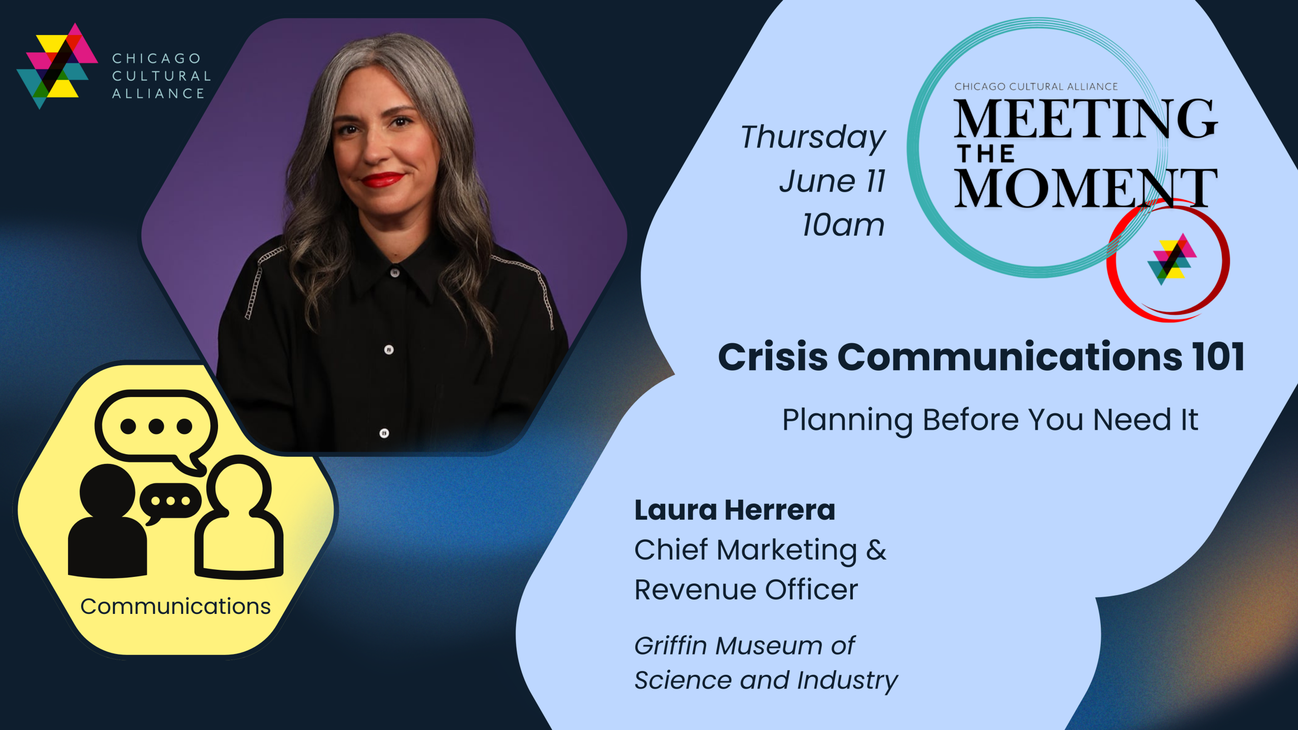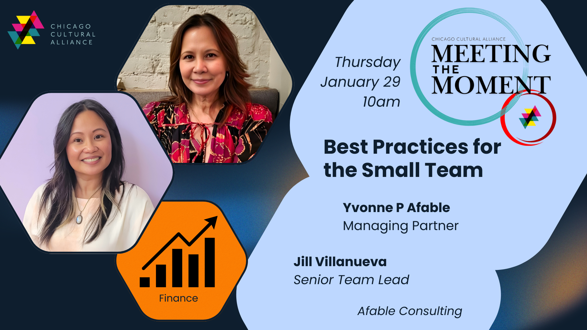 The Chicago Cultural Alliance presents Meeting the Moment, a dynamic free workshop series designed to equip cultural and heritage nonprofits with practical tools and strategic insights to navigate today’s challenging landscape for arts and community organizations. Ypu can view the full schedule of sessions HERE. In an era of shifting funding environments, policy uncertainties, and evolving audience expectations, Meeting the Moment supports leaders and teams with focused sessions on essential nonprofit functions — from marketing and communications to fundraising, finance, operations, and collections.