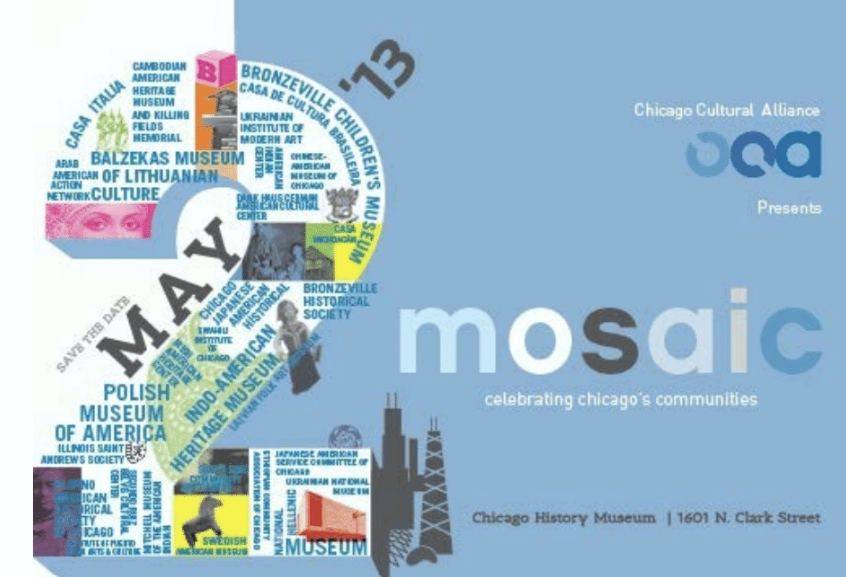 MOSAIC is the annual benefit for the Chicago Cultural Alliance (CCA) that expresses our mission of cultural inclusion and equity. The CCA traces its origins to the Field Museum’s Cultural