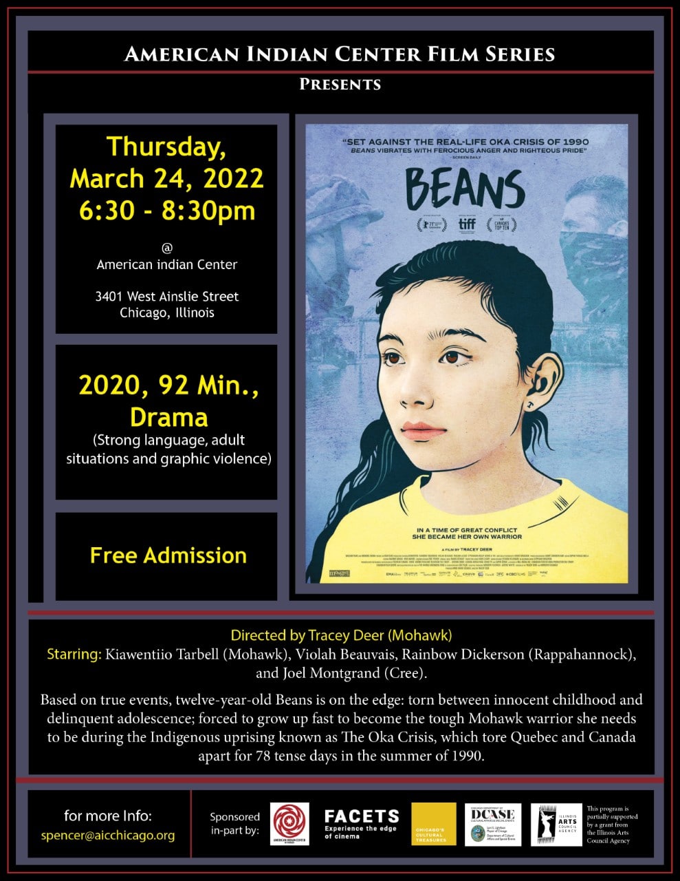 Everyone welcome to a free film screening at the American Indian Center of Chicago. Beans (2020) - Directed by Tracey Deer (Mohawk) Twelve-year-old Beans is on the edge: torn between innocent childhood and reckless adolescence; forced to grow up fast and become the tough Mohawk warrior she needs to be during the Oka Crisis, the […]