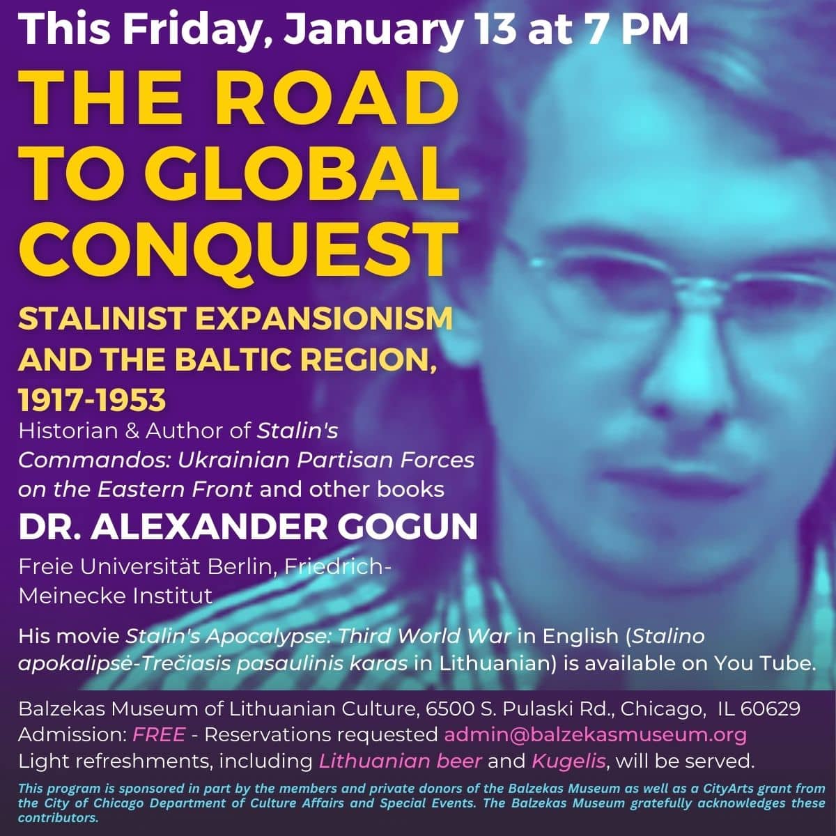 This Friday, January 12, 2023, at 7 PM the Balzekas Museum of Lithuanian Culture, Chicago, presents: "The Road to Global Conquest: Stalinist Expansionism and the Baltic Region, 1917-1953" A lecture by Dr. Alexander Gogun from the Free University of Berlin Dr. Gogun is the author of Stalin’s Commandos: Ukrainian Partisan Forces on the Eastern Front […]