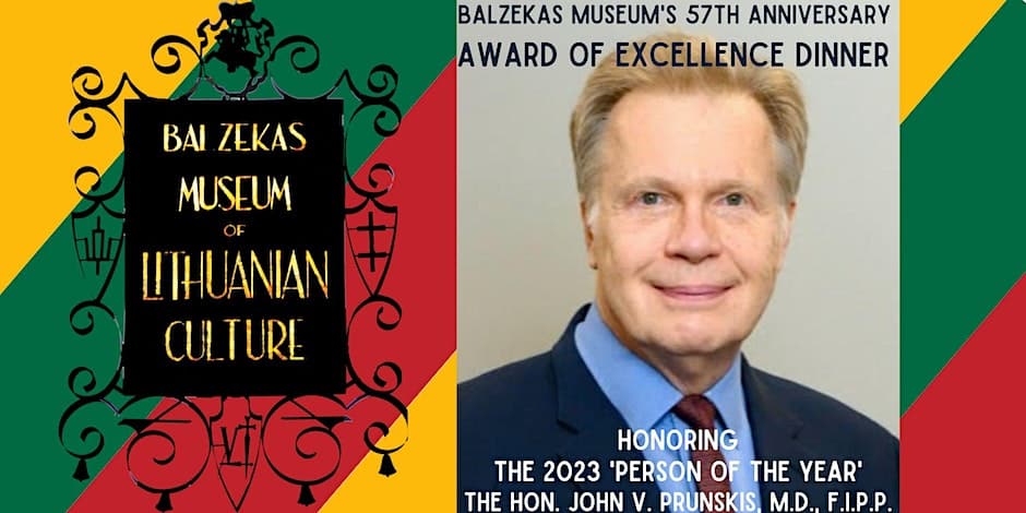 The Balzekas Museum of Lithuanian Culture will honor John V. Prunskis for his service and contributions in the field of anesthesiology and to the United States and Lithuania.