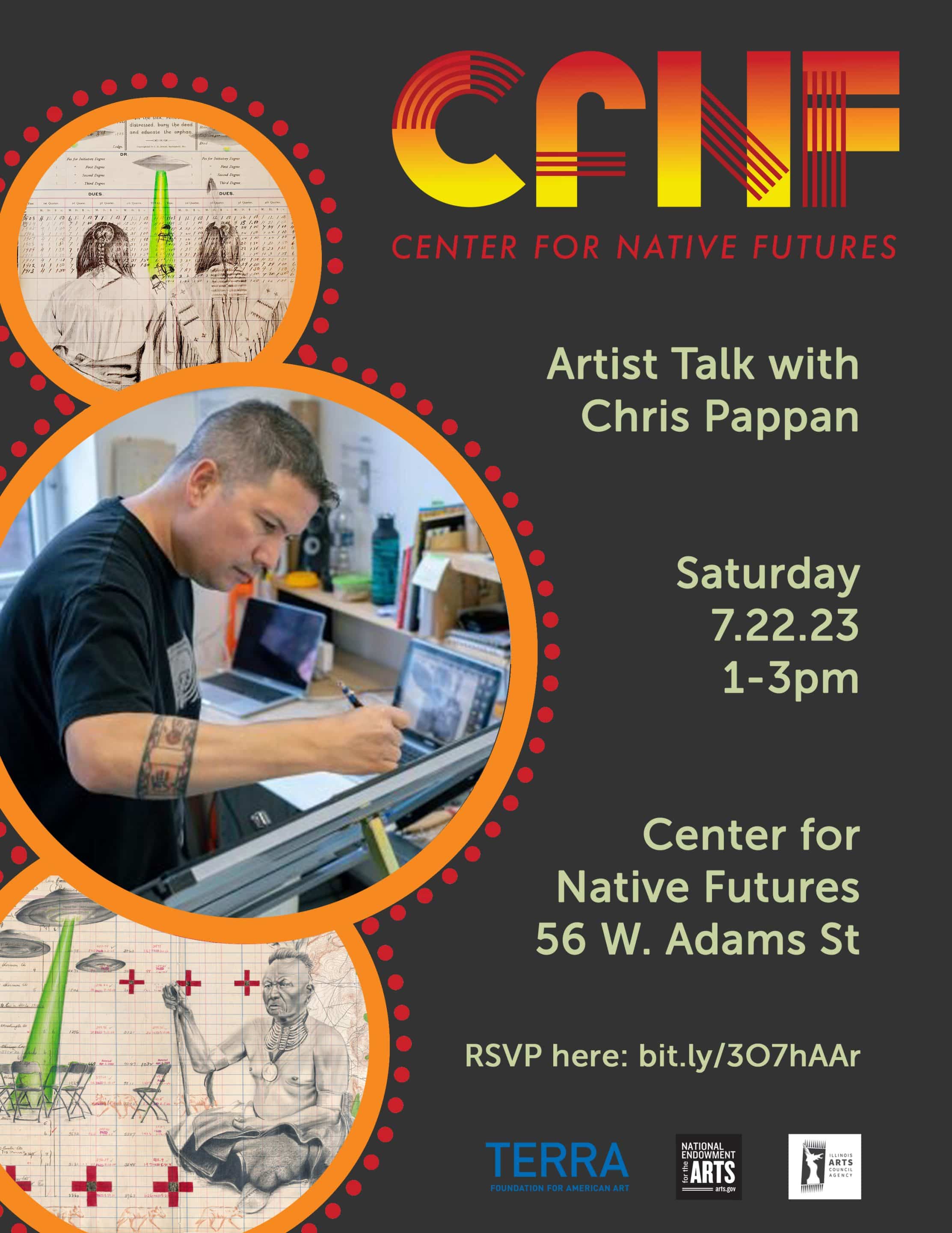 See works and listen to a talk by acclaimed visual artist and Center for Native Futures co-founder Chris Pappan (Kanza/Lakota) in this first of several summer pop-up events.