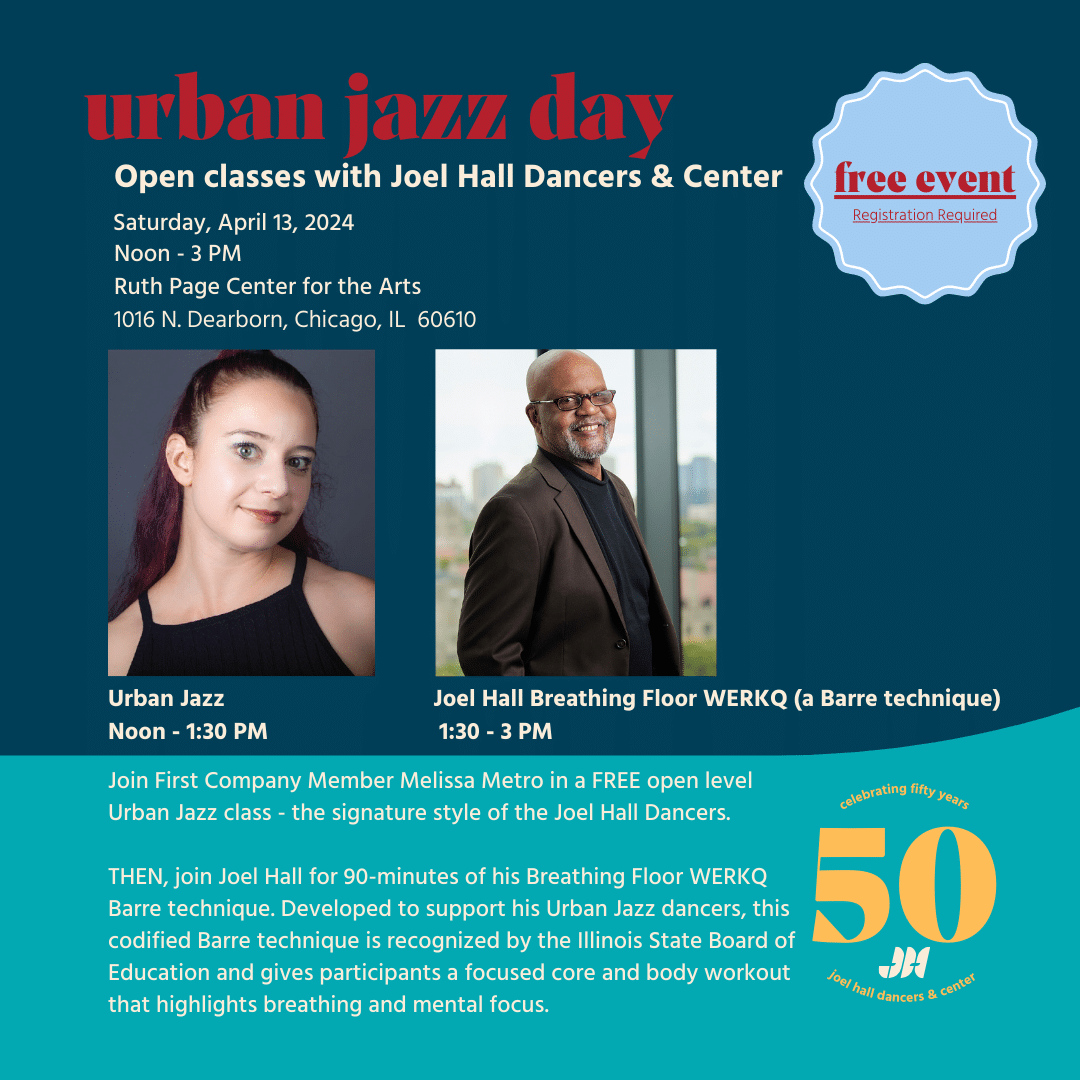 Join members of the Joel Hall Dancers & Center family at the Ruth Page Center for the Arts for FREE classes in the signature style of the Joel Hall Dancers, Urban Jazz. Part of our 50th Anniversary celebration activities, join us and experience some of the WERKQ that makes Joel Hall Dancers & Center unique […]