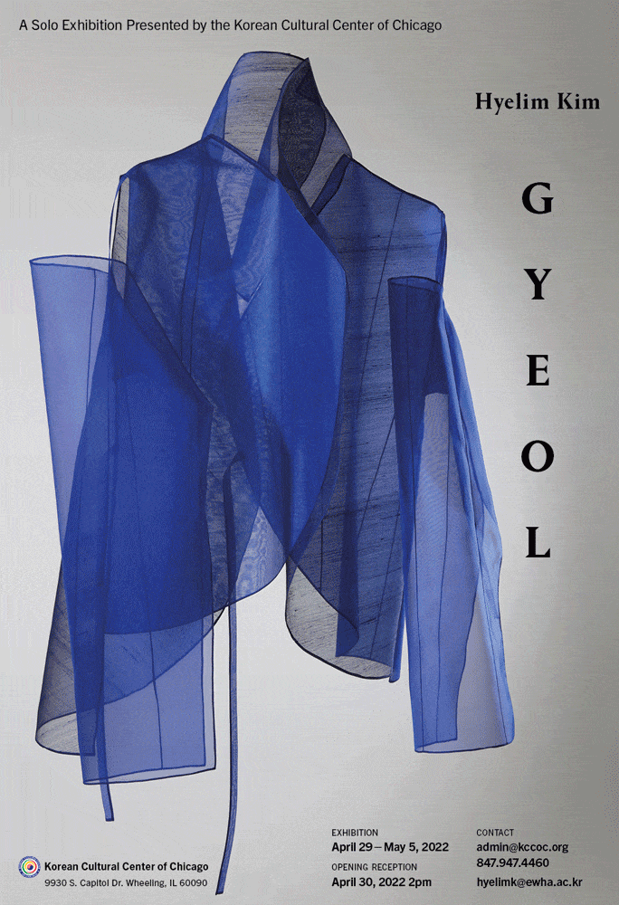 Fashion Artist, Hyelim Kim exhibition of traditional and modernity garment constructed using the techniques of the Korean traditional hanbok sewing known as, Kkaekki, using the Western textile of wool silk, cotton silk, and Korean textile of Korean silk, silk organza and dupioni silk. Opening Reception is April 30 at 2pm.
