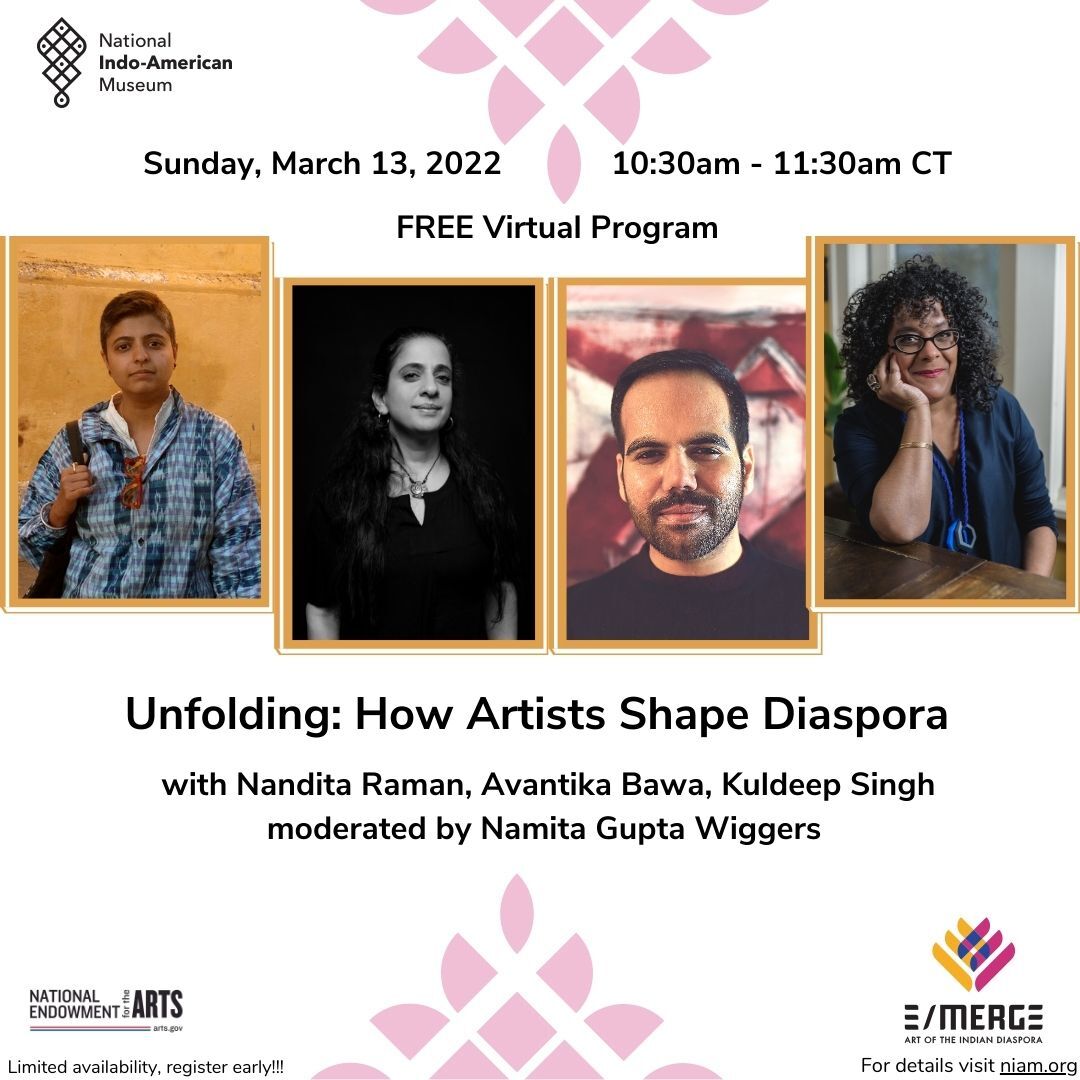 Join our Panel of Artists, Curators, Writers and Creators in an immersive discourse, following a guided tour of the artwork on display at E/Merge: Art of the Indian Diaspora. Date: Sunday, January 16, 2022 Time: 10:30am-11:30amCT About our Panel: Surabhi Saraf is a multimedia artist, composer, and founder of the Centre for Emotional Materiality. Her practice lives […]