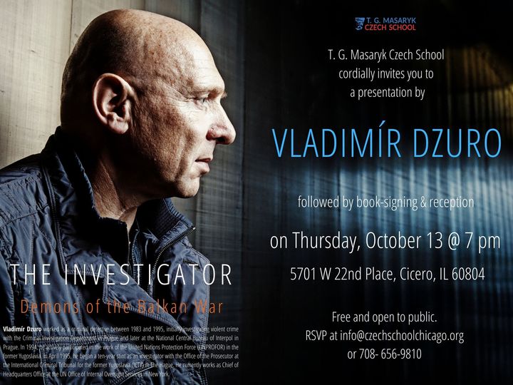 Please join us for a lecture by VLADIMÍR DZURO – Chief of Headquarters Office at the UN Office of Internal Oversight Services, retired Czech Police Commissioner, war crimes investigator, and author of The Investigator: Demons of the Balkan War – on THURSDAY, OCTOBER 13 at 7pm. Mr. Dzuro will discuss his personal account of war […]