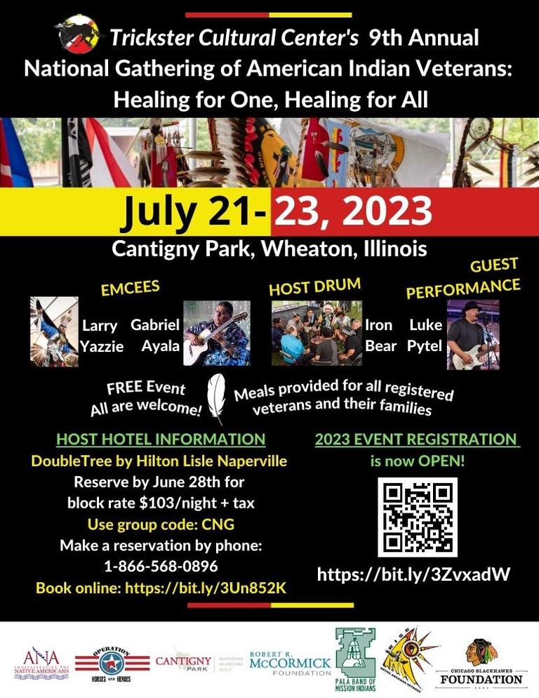 Cost: Free Event day:  July 18-19, 2025 Event address:  Trickster Cultural Center, 190 S Roselle Rd, Schaumburg, IL 60193 Website:  https://www.tricksterculturalcenter.org The National Gathering of American Indian Veterans event honors veterans and military personnel of all cultures, eras and branches in a Native Way that is open to all. This is a 2-day event that is […]