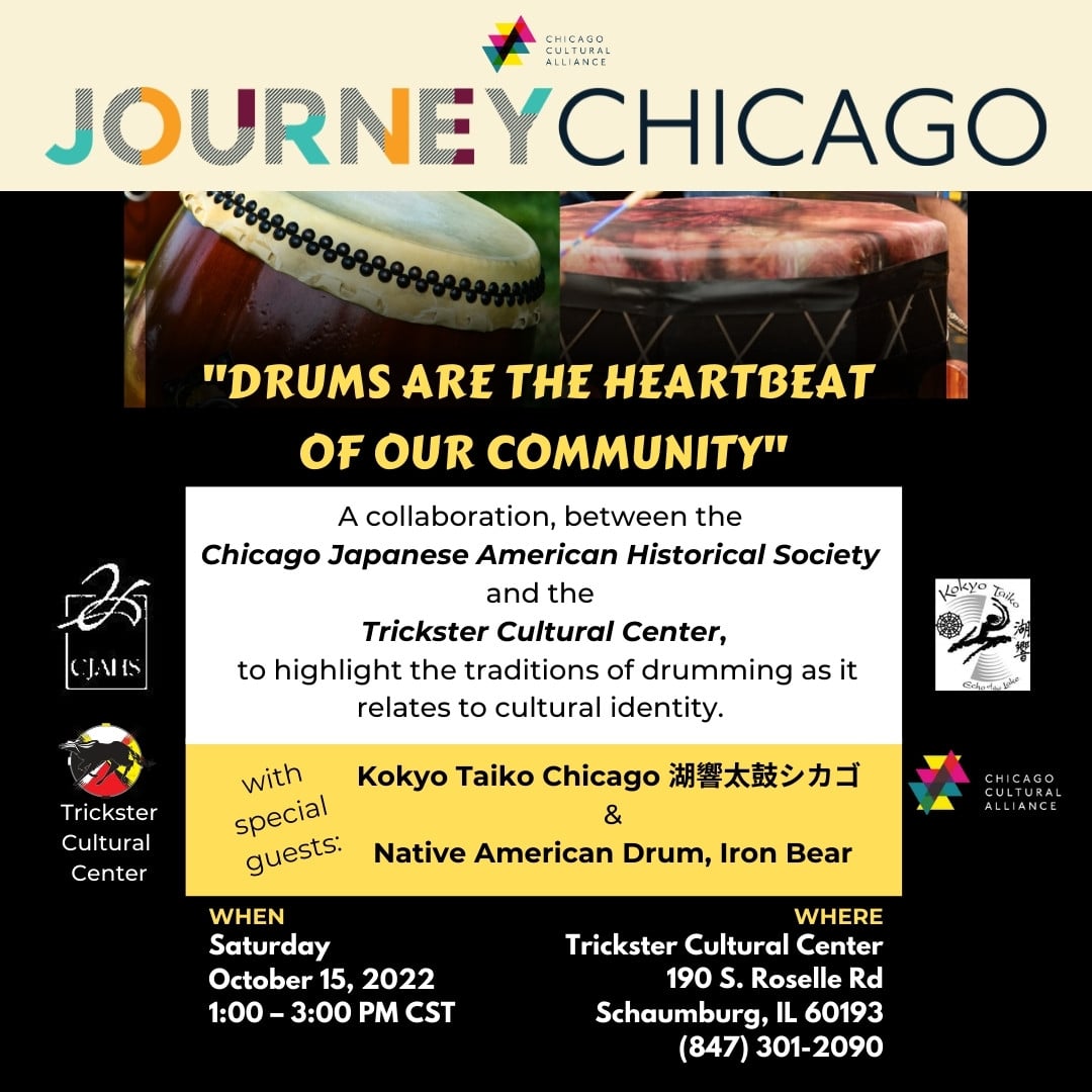 This event is part of Journey Chicago, the Chicago Cultural Alliance's annual citywide festival of cross-cultural events. A collaboration between the Chicago Japanese American Historical Society and Trickster Cultural Center to highlight the traditions of drumming as it relates to cultural identity. A performing group from each culture will demonstrate and share their art. Japanese […]