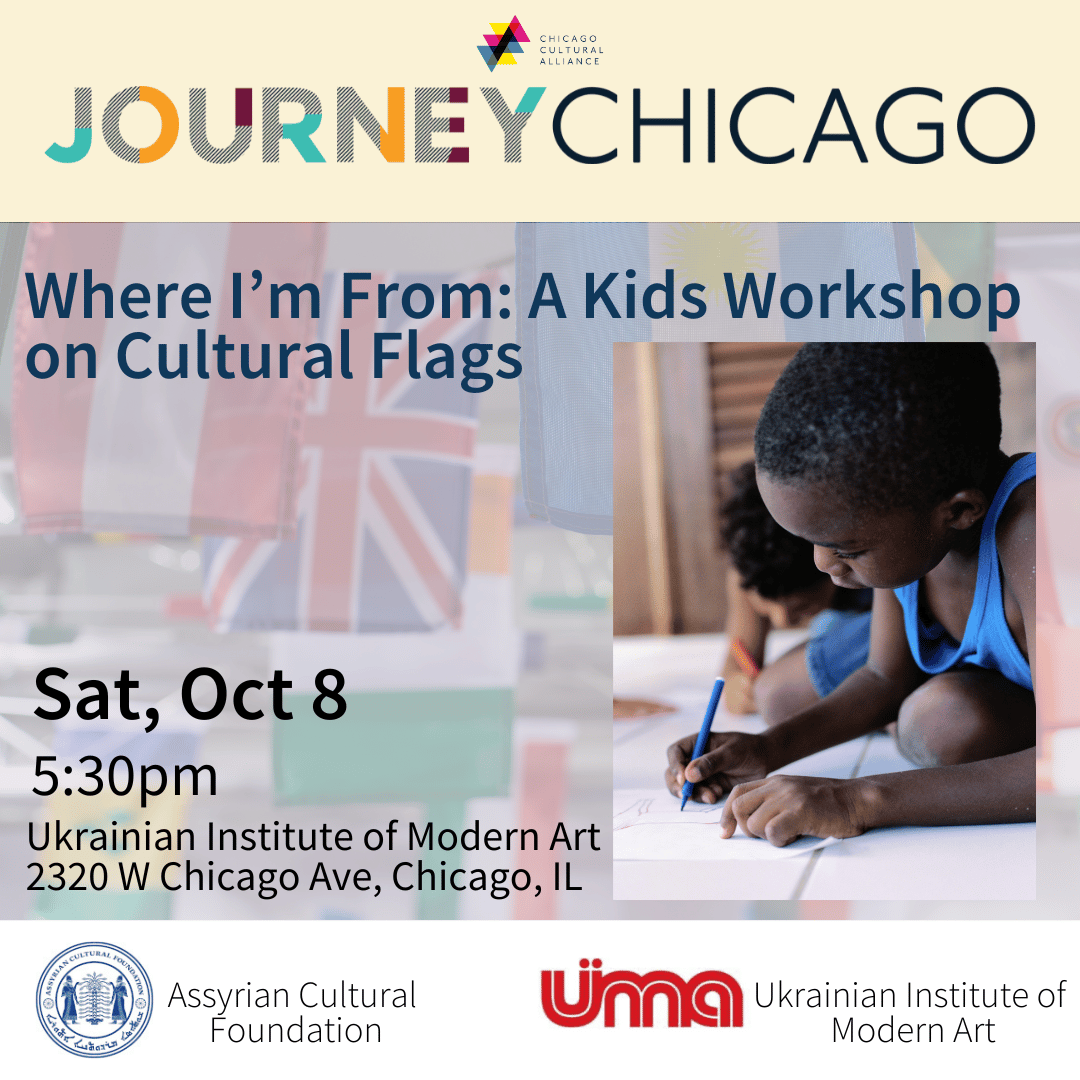 This event is part of Journey Chicago, the Chicago Cultural Alliance's annual citywide festival of cross-cultural events. For this hands-on, art-making workshop, children will learn about the artistic symbolism on our nations' flags (primary examples will include the Assyrian and Ukrainian flags, as well as the American and Chicago flags). Everyone will then have the […]