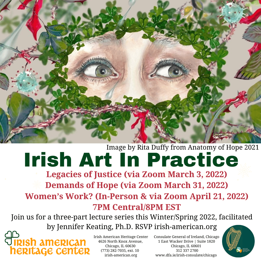 The Irish American Heritage Center, in partnership with the Consulate General of Ireland, Midwest, presents Irish Art in Practice. Join Jennifer Keating, Ph.D. as she brings us through the world of Irish arts and artists, and the living applications and impressions it makes on the world around us. Jennifer Keating  is a Senior Lecturer and […]