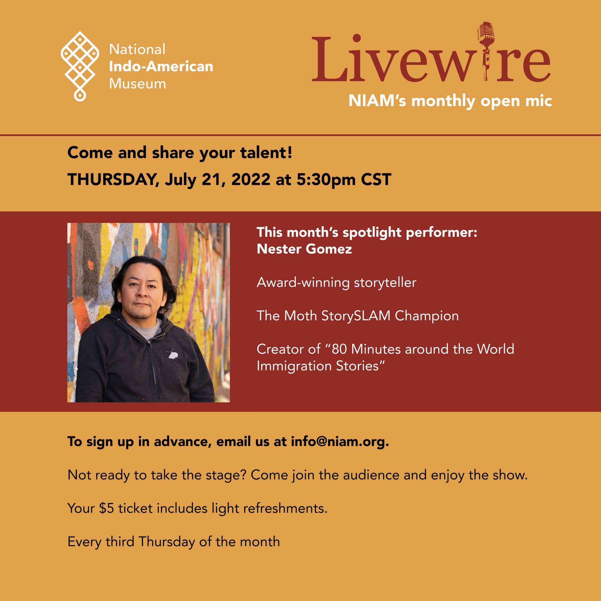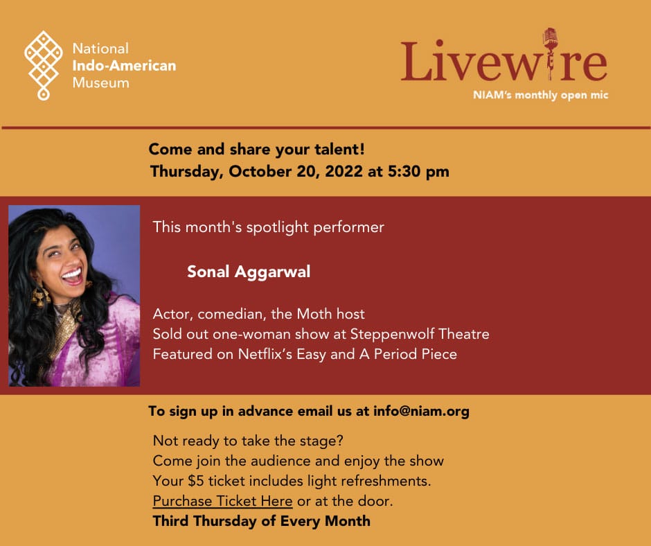 Livewire is your Open Mic platform to jam, tell us a story, act your heart out, enthrall with a verse, drop the mic... You bring the talent we’ll bring the cheers! When? Thursday, September 15, 2022 at 5:30 PM Where? National Indo-American Museum, 815 S Main St, Lombard, IL 60148 You'll have 3 minutes for any kind of […]