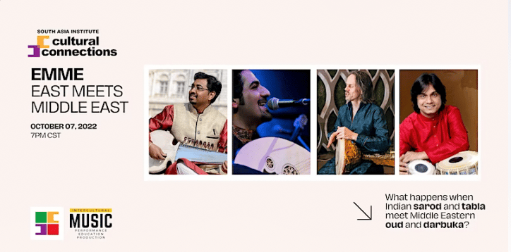 East Meets Middle East (EMME) is a musical collective across continents celebrating the rich traditions of the Middle East and South Asia. About this event **Limited Seating Capacity. ** Early Ticket Purchase Recommended. What happens when Indian sarod and tabla meet Middle Eastern oud and darbuka? East Meets Middle East (EMME) is a musical collective across continents celebrating the rich traditions of the […]