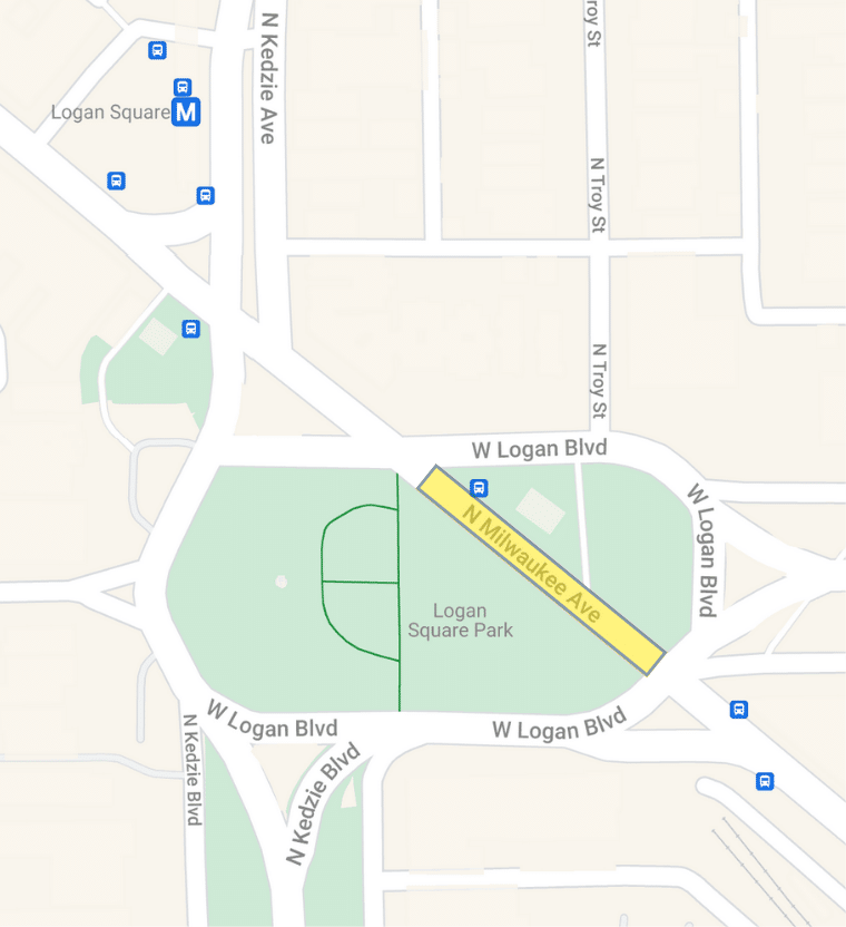 By Bus: The nearest bus stop is Milwaukee & Logan Blvd, which is reachable by CTA Bus #56. Click here for the CTA Bus Tracker to see up-to-date information.